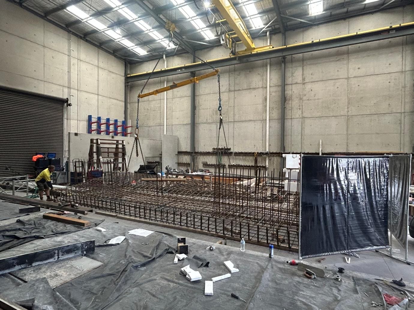 Rather than attempting to fabricate reinforcing steel cages on site under restrictive conditions, we leveraged our 3,000m² Torquay facility to prefabricate and weld all reinforcement in a controlled warehouse environment. We don’t outsource to third-party fabrication shops—this was in-house manufacturing using our own equipment, our own qualified welders, and our own quality control protocols throughout the entire process.
