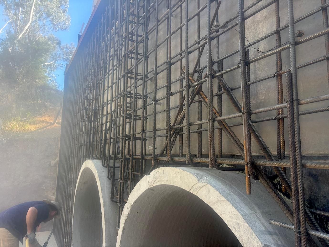 The project involved complex concrete works in one of the most constrained environments a contractor can face: directly underneath an existing bridge structure. The physical realities were unforgiving: