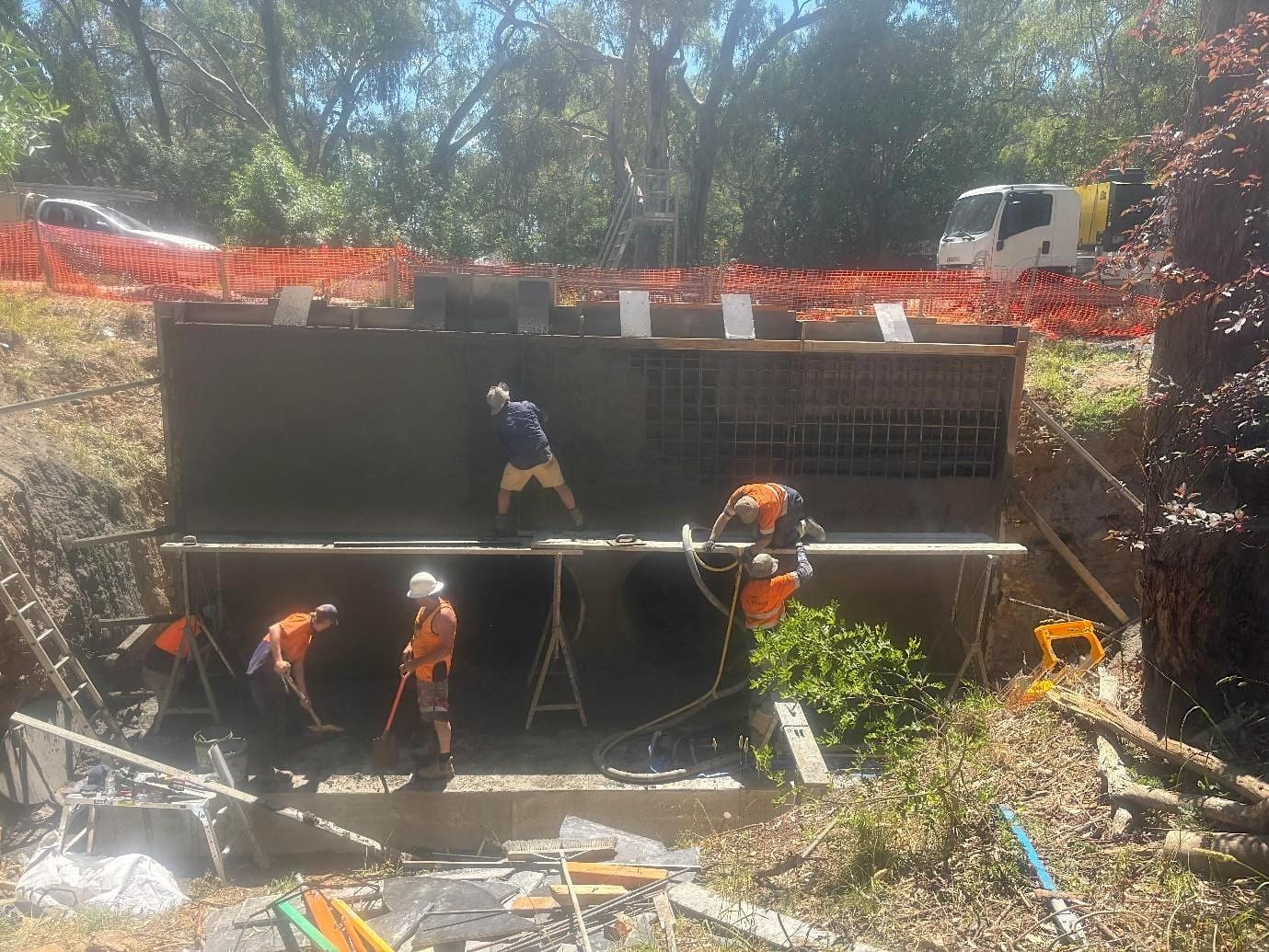 Challenging sites don't just demand smart planning, but importantly reveal which contractors control their entire value chain. A recent concrete works project beneath an existing bridge in Mansfield, Victoria, demonstrates exactly why Chalmers Constructions' vertically integrated approach delivers results that fragmented contractors simply cannot match.
